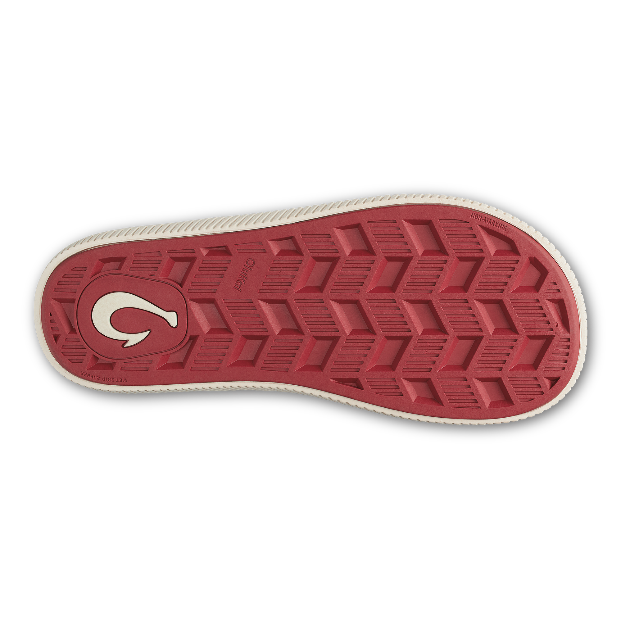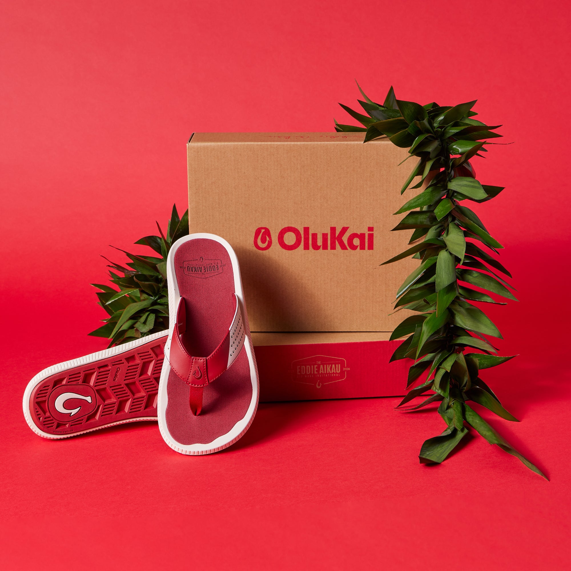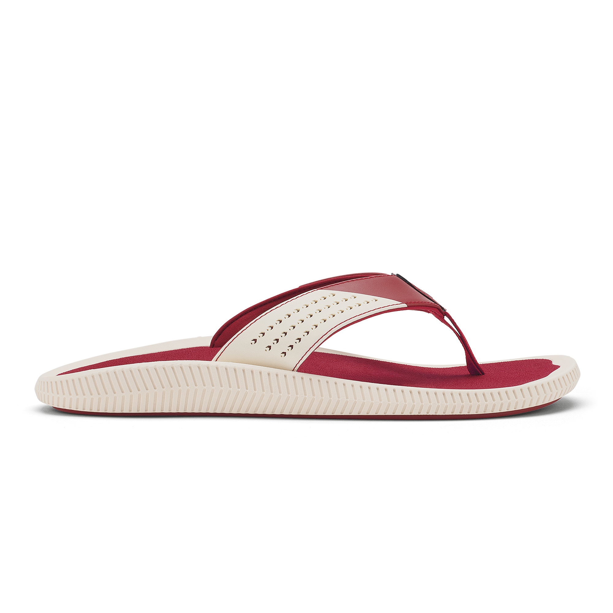 OluKai Craftsmanship: Features Kalo plant-inspired laser-cut upper straps and an embroidered hook logo.
